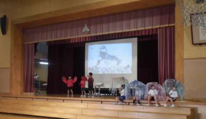 2年生の表現・音楽です。みんな、せいりふや演技を練習して、ずいぶん上手になってきました。本番をお楽しみに!