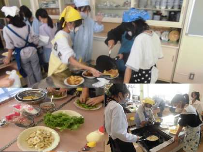 今日はクラブ活動の日。画像は、将棋・遊び・調理クラブの活動風景です。調理クラブは、おいしそうなクレープをつくっていました。