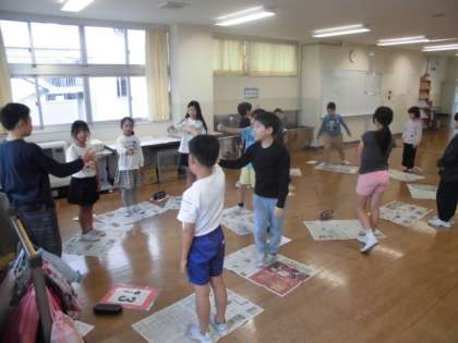 2学期たてわり活動2回目を行いました。今回は、校内で、新聞ジャンケンやばくだんゲームなどで楽しく遊び、1〜6年生の交流を深めています。