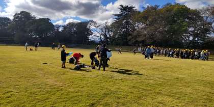 気持ちのよい本丸公園で、おいしく仲良く弁当を食べました。お家の方、ありがとうございました。