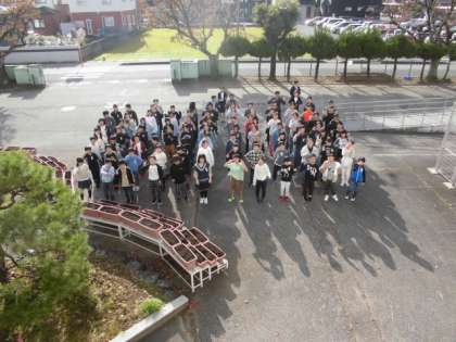 6年生が、卒業アルバム写真撮影をしています。今日は個人・学級・学年で撮りました。画像は、校舎前、全員で撮影した様子です。卒業まであと5か月となりましたね。