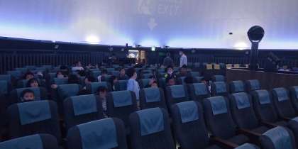 科学博物館でプラネタリウム鑑賞をする前の4年生。気持ちよく秋に見える星、星座、月の動きを学習しました。実際に秋の夜空を眺めてみましょう。16日が満月だそうです。