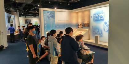 イタイイタイ病の怖さや歴史について見たり、説明を聞いたりする5年生。