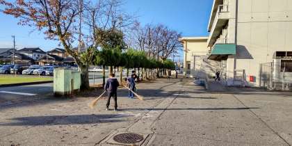朝、6年生男子が、校舎前の落ち葉はきに、自主的に励んでいます。今まで毎朝、玄関清掃をしていましたが、落ち葉が多いのを見て、ほうきで集めてとっています。ありがとう。