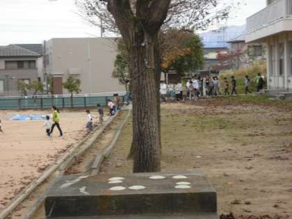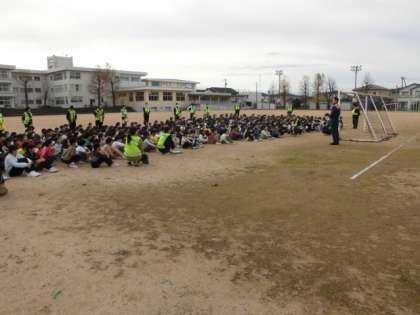 「家庭科室から出火」という想定で、避難訓練を行いました。消防署員に見ていただいて、全校児童がグラウンドに、迅速に静かに避難・集合しました。消防署の方からは「有毒な煙を吸わないように、ハンカチやマスクで口を覆うことが大事」と言われました。