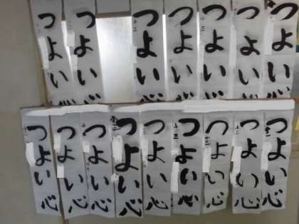 各学年・学級で、1月8日始業式の書き初め大会に向けて練習を始めています。題材は、6年「夢の実現」、4年「雪の立山」、3年「つよい心」。これからも練習を続けて上達します。