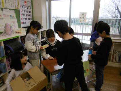 2年2組が、1年2組の子供たちを生活科の学習に招待しました。子供たちは今日までどんなおもちゃランドにするか話し合い、準備を進めてきました。1年生に楽しんでほしいという思いで「にこにこランド」と名付け、6つのお店を開きました。1年生にルール説明をしたり景品を渡したりして、「みんながにこにこで楽しんでくれてよかった」と嬉しそうに振り返っていました。