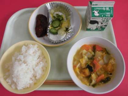 今日の献立は「ごはん、ほうとうなべ(ほうとう、カボチャなど)アジのみりん焼き、ゆずあえ」でした。温かく甘い、ほうとう鍋をおいしく食べる5年生と、献立紹介をする放送委員会でした。明日21日は冬至(とうじ)です。