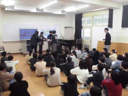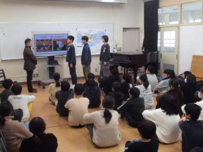 6年生が、総合的な学習や学習発表会などの活動を通して集まった募金を、教えたもらったインドネシア教育振興会の方に渡す贈呈式を行いました。ご協力いただいた保護者、地域の皆様、ありがとうございました。募金は、1月にインドネシアの学校の子供たちの文房具として利用されるそうです。(新聞掲載されました。)