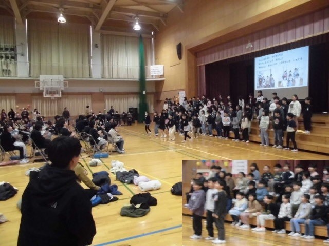 2年生は、漫才風に出し物をしたり、6年生に関するクイズを出したり、歌を歌ったりすることで、楽しく6年生に感謝の思いを伝えました。