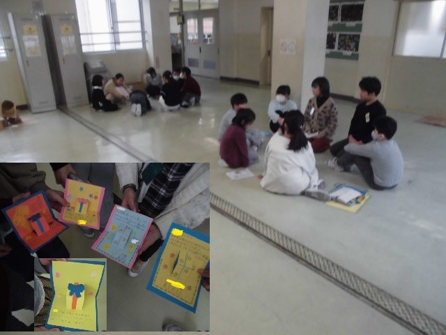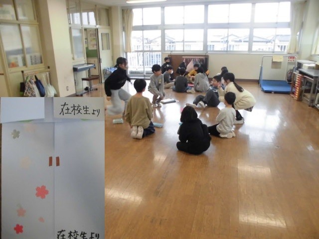 先週、在校生から6年生にメッセージカードを渡して、最後にたてわり班でみんなで遊んだり、6年生からも班員一人一人に手作りカードをおくったりして、全校みんなで温かな交流の輪ができました。