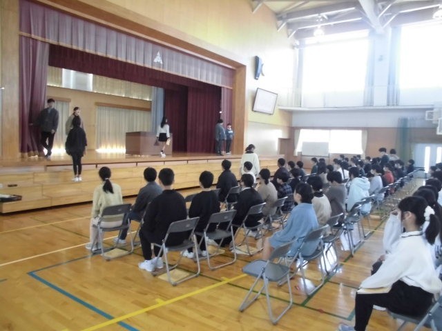 6年生全体での卒業証書授与練習が始まりました。一人一人、立つタイミングや呼名返事、証書のもらい方、歩く順路など一通り練習しました。いよいよ気分が高まってきました。旅立ちの日まであと1週間です。
