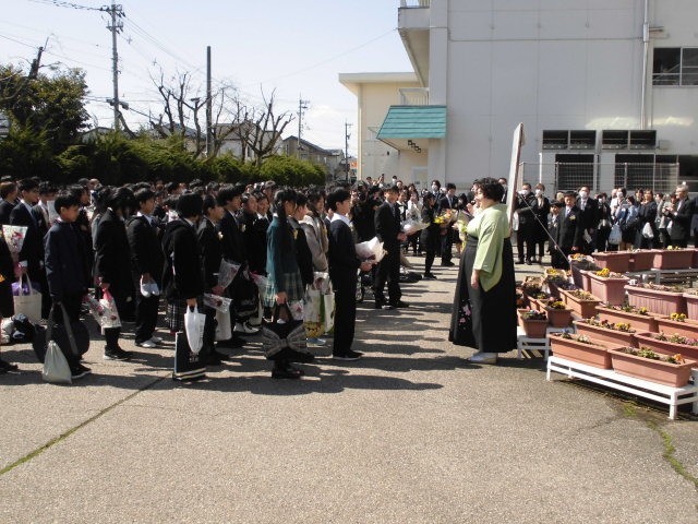 3月18日、卒業式後の「巣立ちの会」の様子です。教育振興会会長さんから6年生に言葉をいただいたり、6年生が学校にエールを、担任の先生に花束をおくったりしました。24日(月)は修了式です。※春休み中に、異動する教職員と子供たちのお別れをする離任式は行いません。24日、修了式と各学級で、全校児童と全教職員でお別れ会をします。
