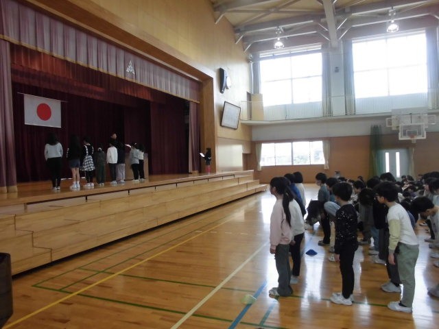 3月24日(月)今年度の修了式を行いました。各学級の代表に修了証を渡して、今年度の課程を終えたこと、みんなが学習や活動をがんばったことを伝えました。また、全校児童と全教職員でお別れの式をしました。この後、各クラスで一人一人に「あゆみ」を渡し、現学級の友達と担任とのお別れの会をします。