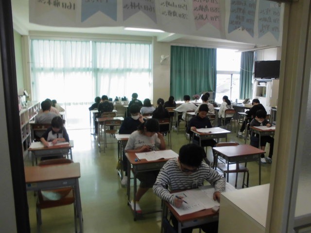 6年生が、全国学力調査にのぞんでいます。今年度は、国語・算数・理科の3教科テストです。5年生までに身に付けた学習の成果を発揮しようと、真剣に取り組んでいます。後日、クロムブック(オンライン)で児童質問調査も行います。