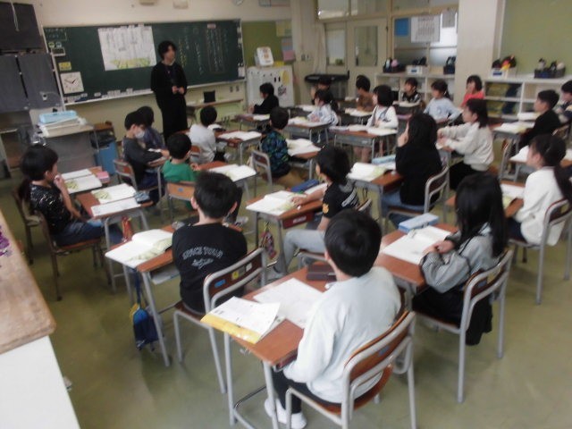 2年生は1限目、どのクラスも国語「ふきのとう」を学習しています。どのように文を読めば、どんな感じになるか、話し合っています。続きは学習参観でご覧ください。