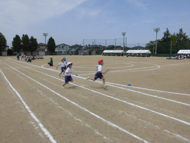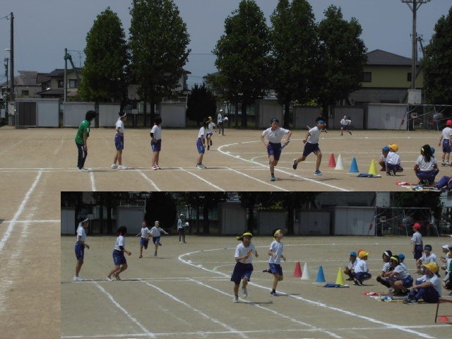 全校児童が見守り、応援する中、予行練習の最後に選抜リレーを行いました。各学年から男女1名が出場してバトンをつなぎます。休み時間に練習を重ねてきて、本番でその成果を発揮し、団の優勝を目指して走ります!