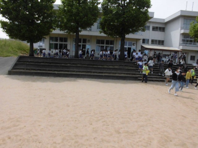 「給食室から出火」という想定で、避難訓練を行いました。今年度初めて、実際に全校でグラウンドに避難し、集合しました。運動会後の休業日明けということもあり、やや真剣みに欠ける時もあったので、今後も、万が一の事態を想定した指導と訓練を重ねます。