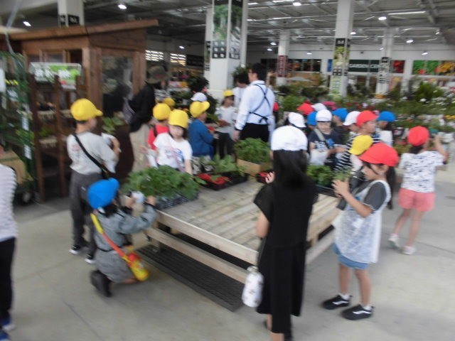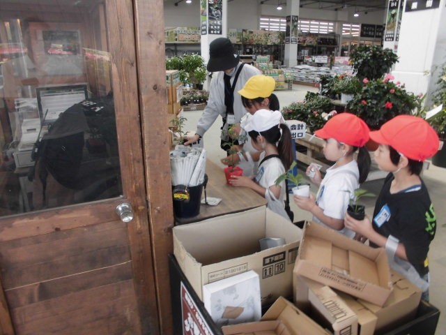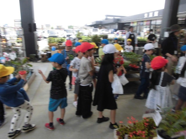 5月末、2年生が地域のホームセンターで、生活科で育てる野菜の苗を、一人一人が購入しました。