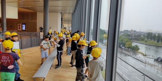 屋上に上る予定でしたが、雨のため、館内から環水公園、駅、神通川などを見て、メモしています。