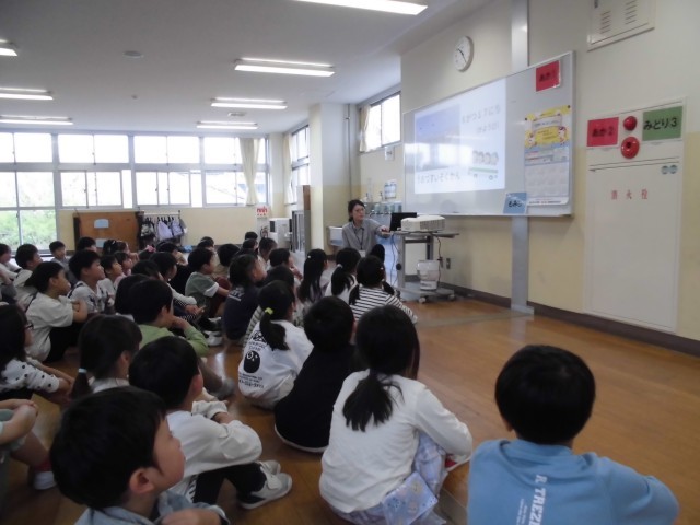 6月に行う魚津水族館での校外学習に向けて、学年集会を開きました。校外学習の目当てや活動内容を聞き、わくわくする姿が見られました。