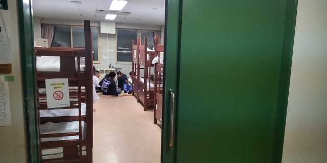 入浴の前に少しの時間、トランプをしたり、ベッドメイキングをしたりする部屋での様子です。