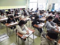 2年生が道徳で話し合いをしています。みんなで輪になって、資料を読んだり気軽に意...