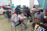 図画工作科の学習で、「自分の顔」をテーマに、一版多色版画の作品づくりに取り組ん...