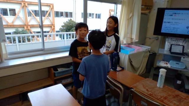 夏休みが明け、久しぶりの登校で話が盛り上がっている様子がたくさん見られました。