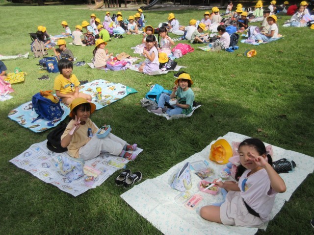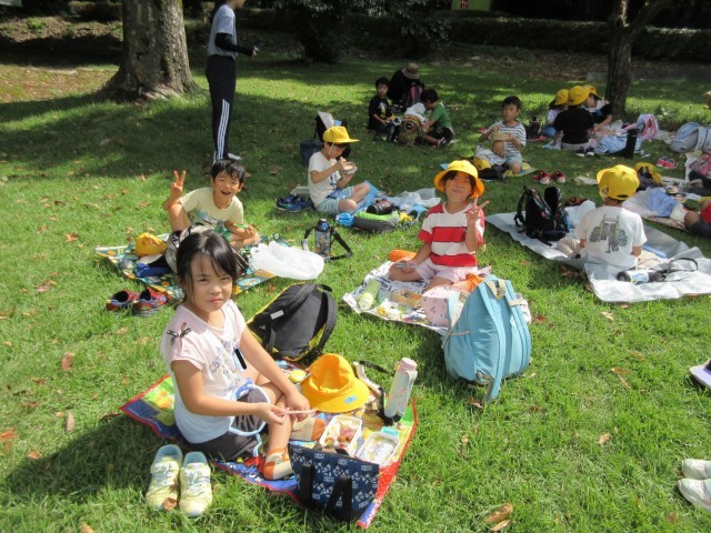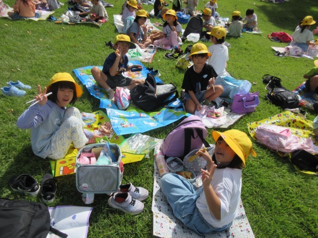 芝生広場で、お弁当をおいしくいただきました。