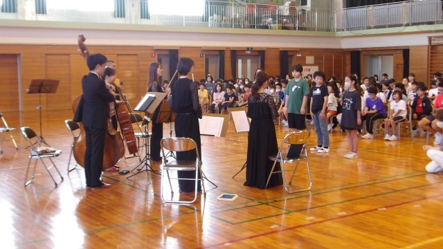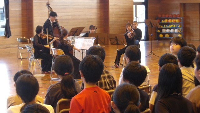 5・6年生は、桐朋アカデミー弦楽アンサンブルさんの出向演奏会に参加しました。バイオリン、ビオラ、チェロ、コントラバスの4つの弦楽器による美しい音色を堪能し、心地よい時間を過ごすことができました。子供たちは楽器や音楽に興味を深めた様子でした。