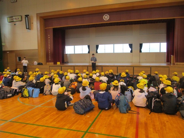 10月8日(水)、いよいよ待ちに待った宿泊学習のスタートです。体育館で出発式を行い、教頭先生か