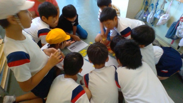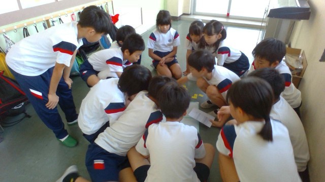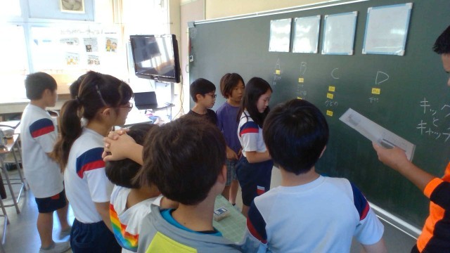4年生は、学年活動で球技大会を計画しています。「ティーボール、キックベース、バウンドバレーボール、セストボール」の4種目から、子供たちは参加したい競技を選び、その中から募った実行委員で仮のチーム決めについて話し合いました。