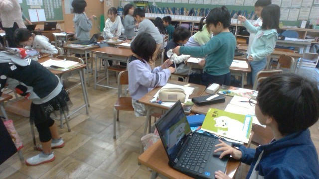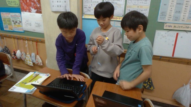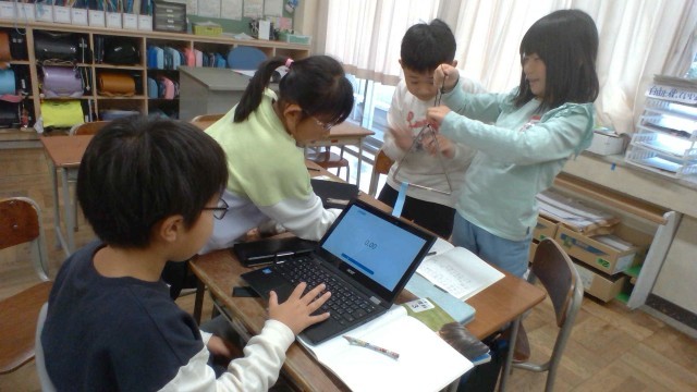 理科の学習で「音が大きいときと小さいときで、ふるえ方はちがうのか」について考えました。「震える長さが違うんじゃないかな」「時間も違うかも」と予想をたて、クロームブックのタイマー機能を使って、協力しながら実験しました。