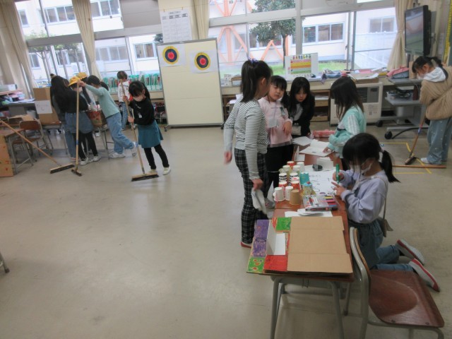 2年生は明日の生活科の授業のためにみんなで協力して教室の片付けやおもちゃの準備をしていました。