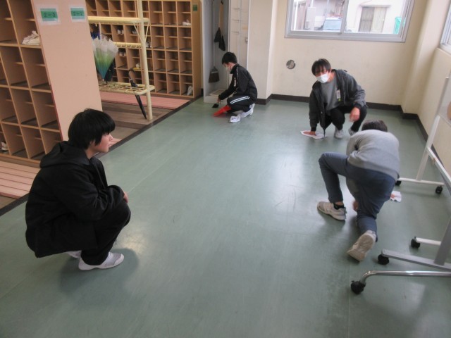 6年生は体育館で行われる学びの発表のためにいすやござを準備したり、学校全体をきれいにするために児童玄関やトイレ等の清掃を行ってくれました。