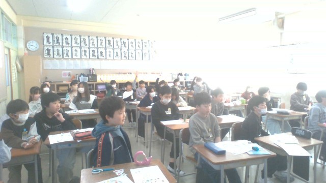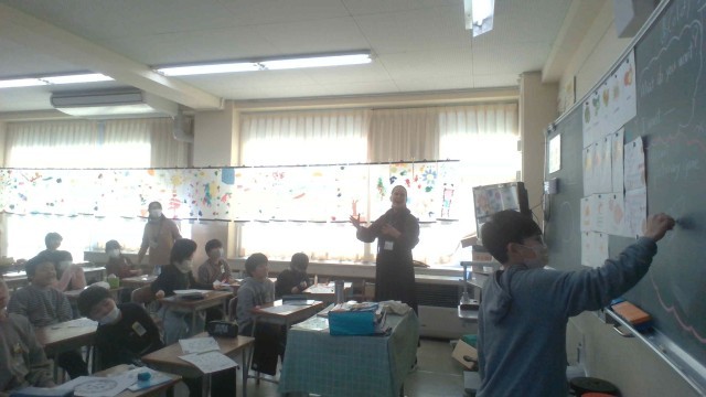 外国語活動では、乗せたいピザの具材を聞き合う活動を通して、自分が欲しい物を伝える表現に慣れ親しみました。