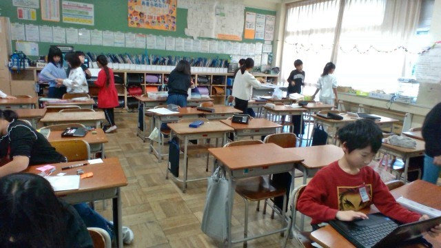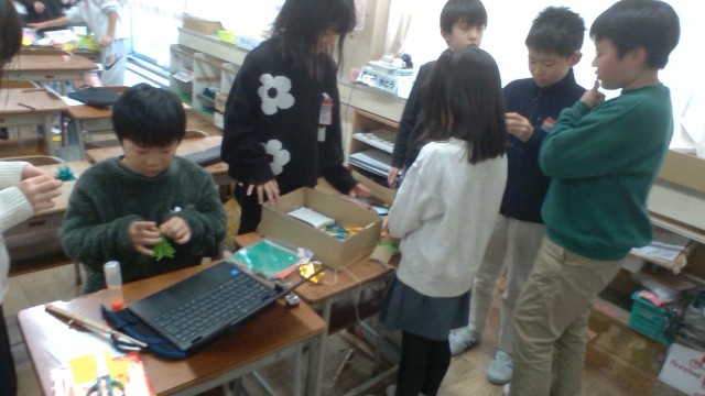 クリスマス集会の準備中(3年生)