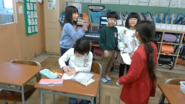 来週の「にこにこ楽しいクリスマス集会」に向けて、今日は準備をしました。演奏に合わせて歌の練習をするチームや景品づくりをするチーム、セリフの練習をするチームと、どのチームも一生懸命でした。