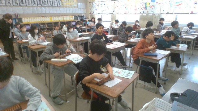 今日は講師の方を招いて「そろばん教室」を行いました。3年生のころに習ったことを思い出した後、より大きい数の計算の答えをそろばんで求めました。明日も続きを行う予定です。