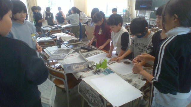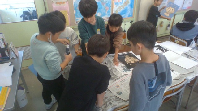 版画を刷ったよ(4年生) 公開日 2026/01/30 更新日 2026/01/29 4年生 みんなで協力して版画を刷り上げました。 1年生 2年生 3年生 4年生 5年生 6年生 学校行事 授業参観 PTA