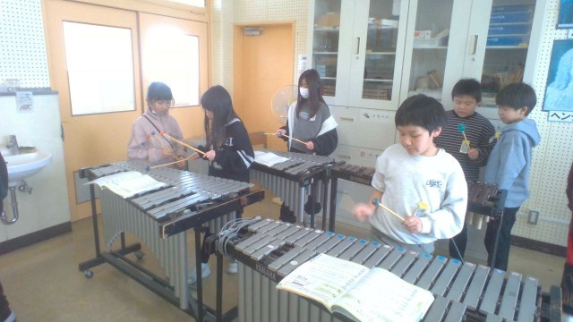 音楽科では「茶色の小びん」の学習を進めています。子供たちは木琴や鉄琴に関心をもち、意欲的に練習していました。次回からは鍵盤ハーモニカと合わせて合奏の練習をしていきます。
