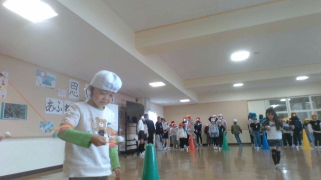 6年生さんが交流活動でスプーン玉入れリレーを開催してくれました。「落とさないように!」という緊張感のなかで進み、白団が優勝しました。1年生は「おもしろかった~。6年生さんありがとう」と感想を述べており、「今度自分たちのクラスでもぜひやりたい」と意欲を見せていました。