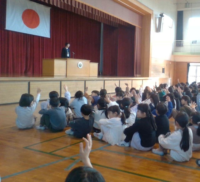 代表児童の修了証授与の後、校長先生の話では、子供たちの落ち着いて話を聞く様子が見られ、この1年での成長を感じました。春休みの過ごし方の話のあと、異動・退職される先生方とのお別れの会がありました。思いもかけない異動もあり、泣いている子もいました。でも、新年度に向けて新たな出会いがあることと思います。