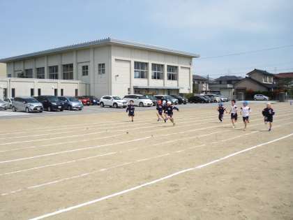 体育の時間に、走る練習をしました。「1年生のときより、速くなったかな。」「負けないぞ。」と子供たちは一生懸命に練習に取り組んでいました。明日天気がよければ、2年生最初の記録をとる予定です。50メートルを力一杯走ってほしいです。