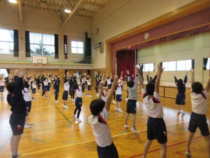 学年でラジオ体操の練習をしました。正しいラジオ体操の仕方を教えてもらった子供たちは「難しい!」「つかれる〜!」と言いながら一生懸命練習をしました。終わった後、汗びっしょりな子供たち。今後もぴたっと揃うことができるように練習をしていきたいと思います。