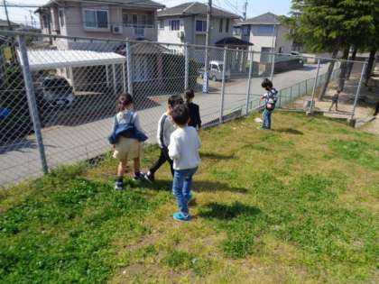 学校の周りにある「はる」を見つけに出かけました。花や虫など、身近にある「はる」をたくさん見つけました。きれいに咲いた花を見て感動したり、見たことのない花を見つけて喜んだりと、春を見つけた子供たちはとても嬉しそうでした。また、目には見えないけれど、吹いてきた風が暖かいことからも春を感じ取っていました。五感をつかって春を見つけることができました。
