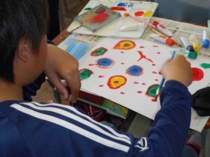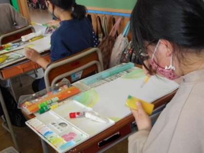 水の使い方や色の混ぜ方等も、上手になってきました。これからも、いろいろな授業を通して力をつけていってほしいと思います。