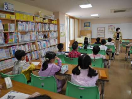 3年生になり、初めて図書室を利用しました。まず司書の先生から辞典の使い方の説明がありました。目次から調べたい事柄を見つけること、索引からページを見つけることを知ることができました。その後、借りたい本を2冊選んで貸し出しをしました。3年生になり、文字の多い本に挑戦している人もいました。今年もたくさん図書室を利用し、本に親しんでもらえればと思います。