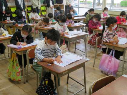 今まで学習してきた姿勢や話し方、聴き方などを意識しながら、正しく数字を数えたりひらがなを書いたりしました。どの子供たちもとてもがんばっていました。